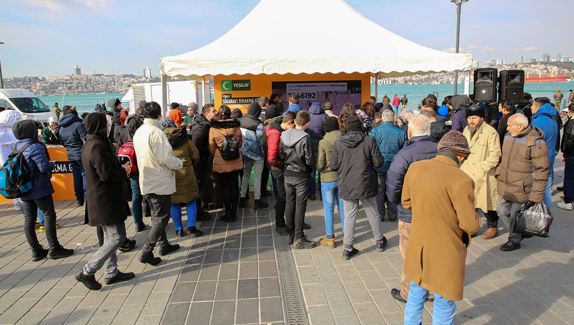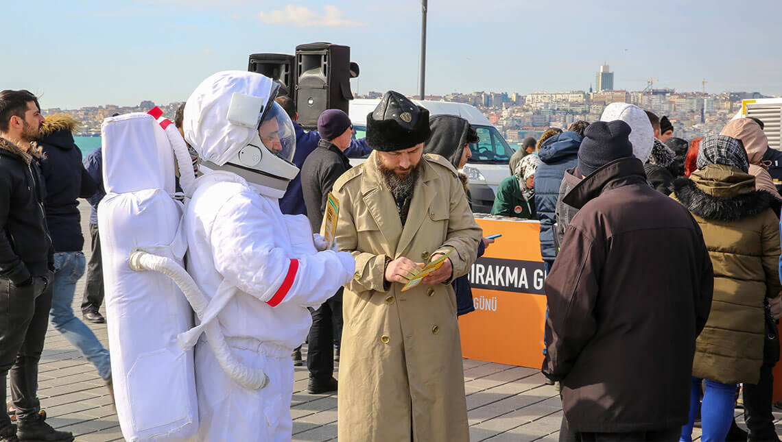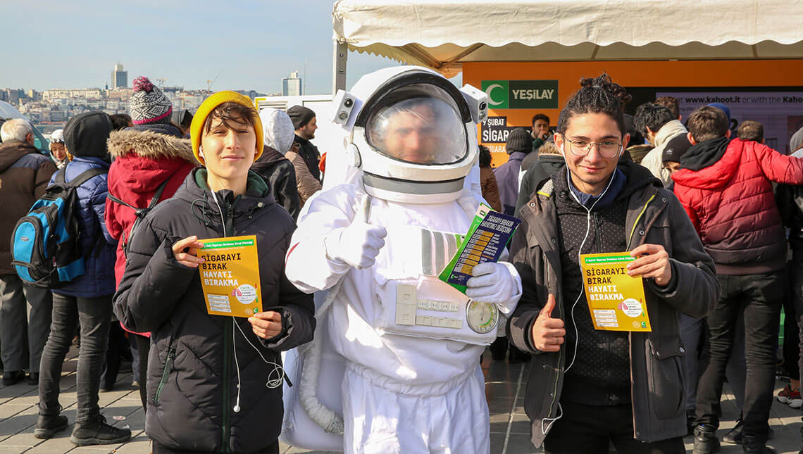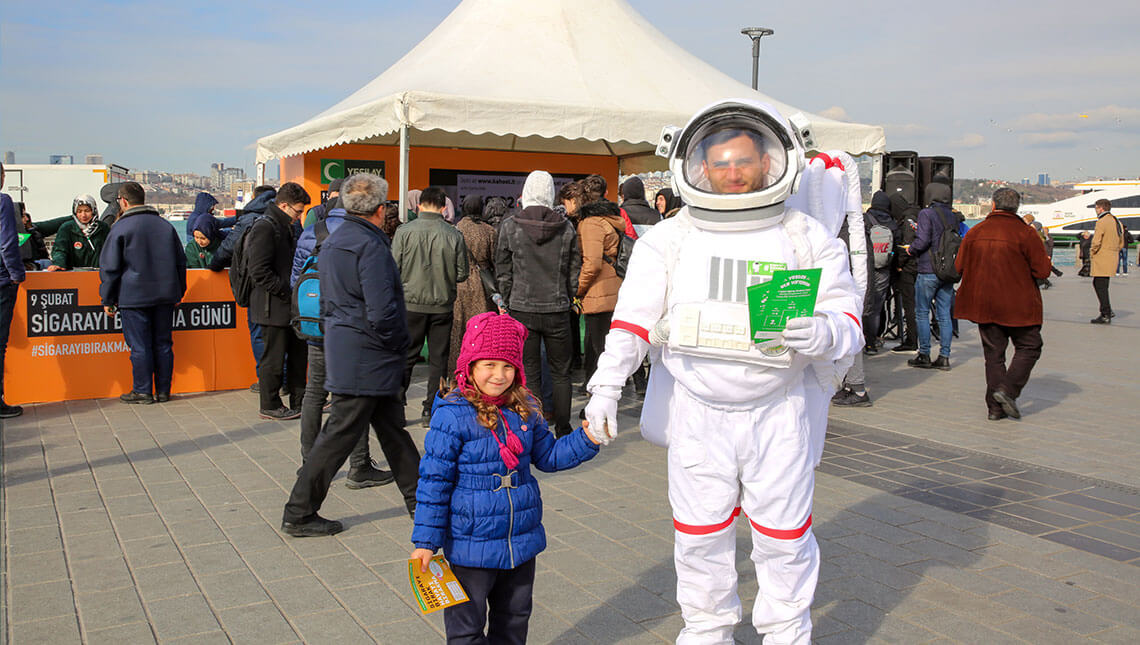 Yeşilay, 9 Şubat Dünya Sigarayı Bırakma Günü’nde tüm bireyleri tütün kullanımının zararları konusunda bilinçlendirmek amacıyla çeşitli etkinlikler gerçekleştirdi. Üsküdar Meydanı’nda düzenlediği bilgi yarışması ile tütün kullanımının zararlarına ilişkin pek çok bilinmeyeni gün boyu 7’den 70’e katılımcılarla paylaşan Yeşilay’ın geçen yıl yarı açık alanlarda ortaya çıkan astronotu bu yıl da meydanda sigarayı bırakma çağrısı yaptı.