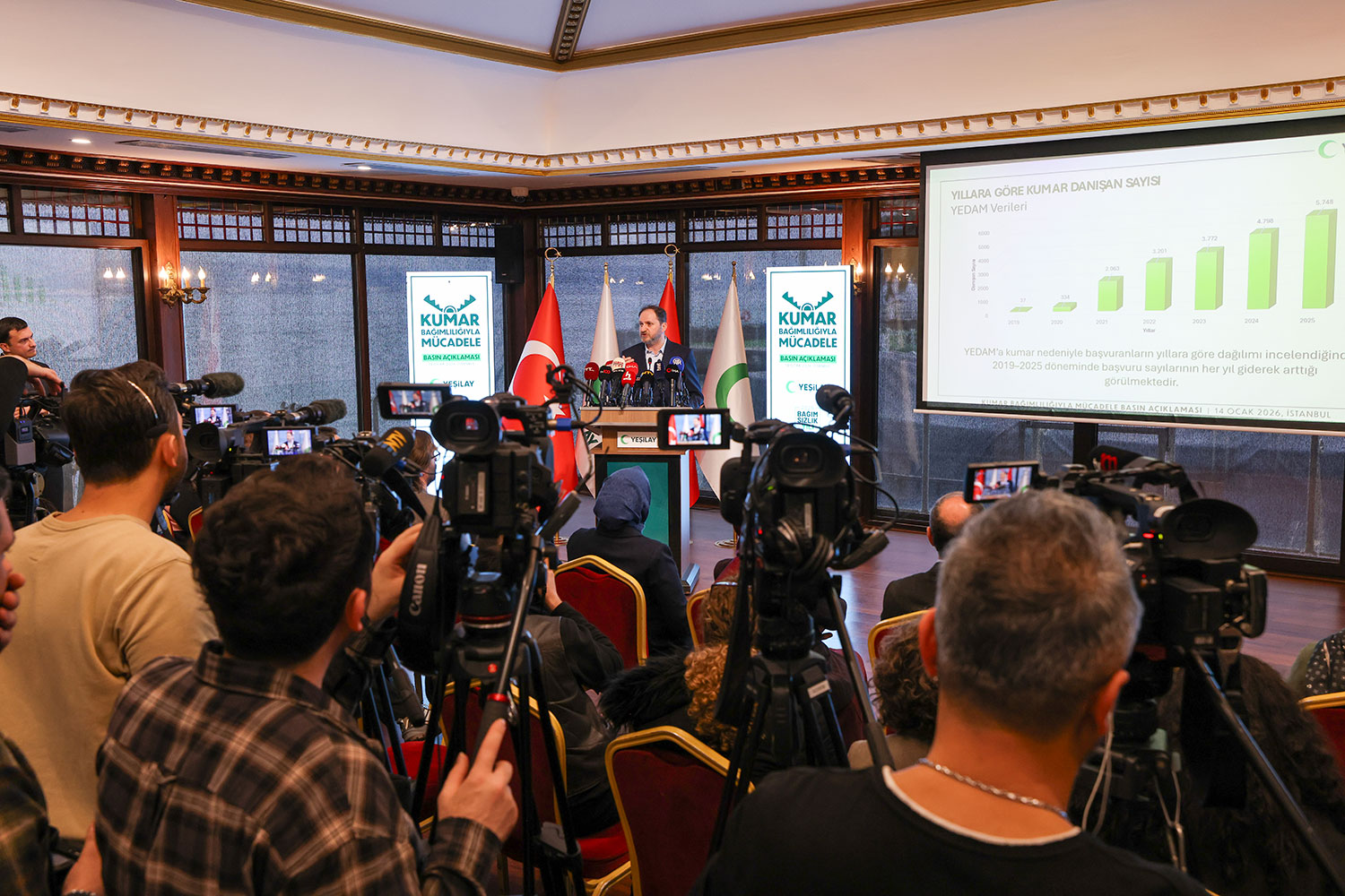 Türkiye Yeşilay Cemiyeti, son dönemde sanal kumarın hızla yaygınlaşması üzerine, kumar bağımlılığına ilişkin güncel verileri ve çözüm önerilerini paylaşmak amacıyla bir basın toplantısı düzenledi. Toplantıda konuşan Yeşilay Genel Başkanı Doç. Dr. Mehmet Dinç, psikoterapiye düzenli devam eden danışanlarda kumardan uzaklaşma oranının 10’da 8 olduğunun altını çizerek, kumar ile ilgili sorun yaşayan herkesi çözümün adresi olarak Yeşilay’dan destek almaya davet etti.