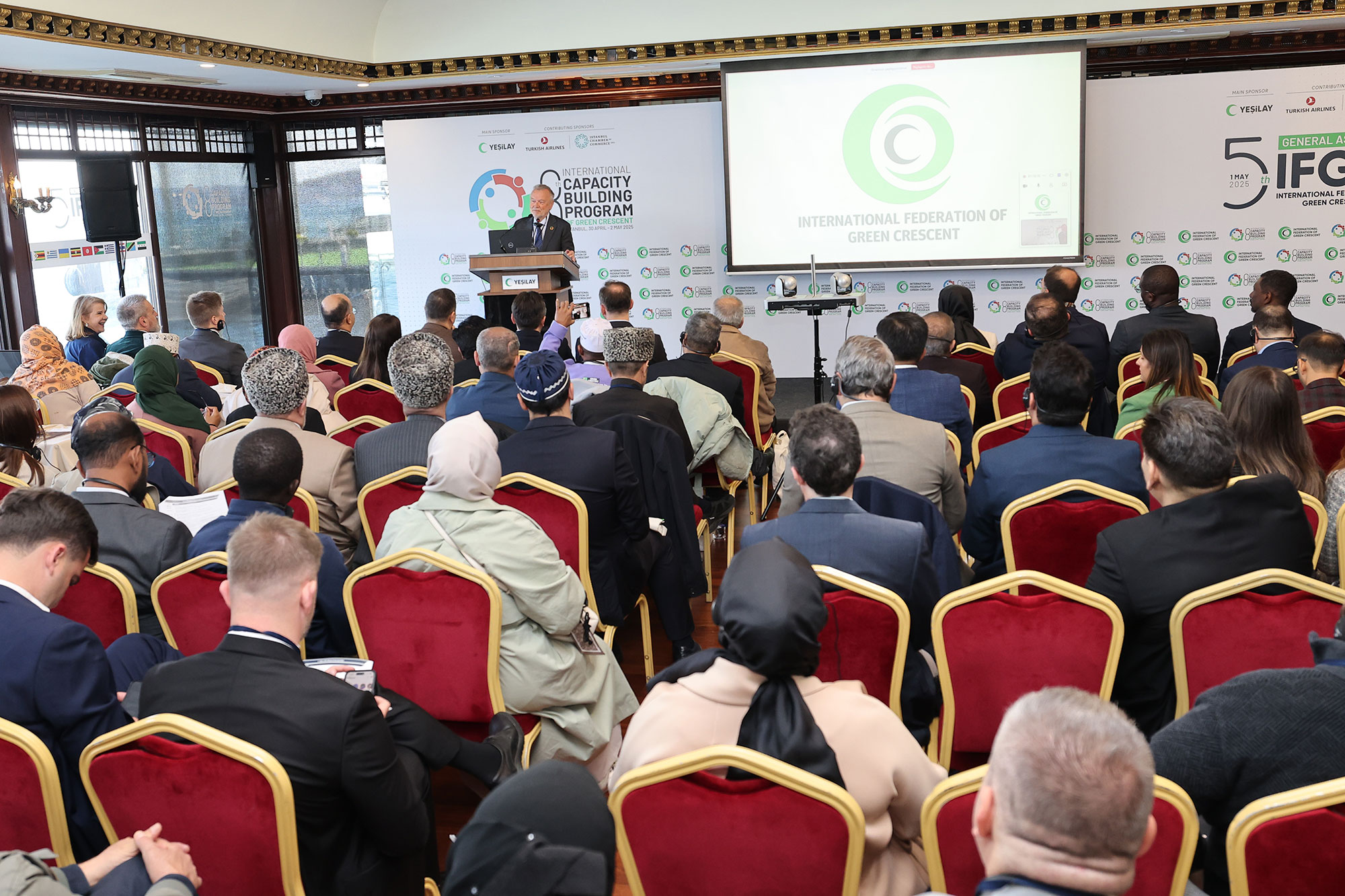 8. Kapasite Geliştirme Programı’nın açılış konuşmasını yapan Yeşilay Genel Başkanı Doç. Dr. Mehmet Dinç, “1920’den bu yana bağımlılıklarla mücadelede asırlık bir tecrübenin sahibi Türkiye Yeşilay Cemiyeti olarak, çok önemli bir programın ev sahipliğini üstleniyoruz. Hepinizin bildiği gibi ‘bağımlılık’ ne yazık ki tüm dünyayı etkileyen bir dalga haline geldi. Bugün burada bizimle olan ülke Yeşilay’larından temsilcilerimizle birlikte, dünyanın dört bir yanında, savaş kadar yakıcı, yıkıcı ve tehlikeli olan bağımlılıklarla mücadele ediyoruz. Burada bulunduğumuz üç gün boyunca toplumların geleceğini tehdit eden bağımlılıklar üzerine tartışarak, bağımlılıkla mücadelede daha güçlü önleme programları üzerine istişarelerde bulunacağız. Bu mücadele beraber yürüdüğümüz yol arkadaşlarımız olan ve program boyunca bizimle değerli fikirlerini paylaşacak olan 60 ülkeden 88 temsilcimiz başta olmak üzere, 15 ülkeden 32 katılımcımıza gönülden teşekkürlerimi sunarım” dedi.