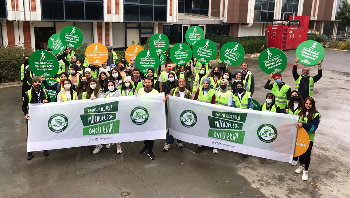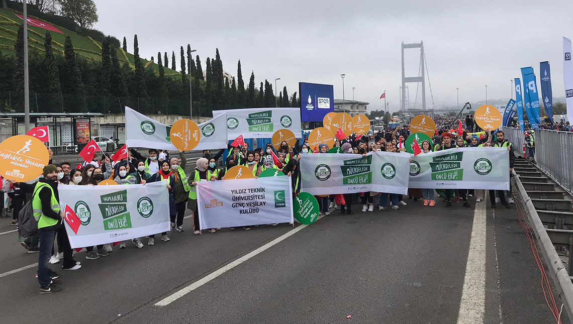 Covid-19 önlemleri alınarak sınırlı sayıda yerli ve yabancı atlet ile düzenlenen Maratona, Genç Yeşilaylı 100 gönüllü “ Sağlıklı Yaşam Mümkün”, Ekrana Değil, Hayata Bağlan”,” Dumansız Dünya için Koşuyorum”, “ Sağlıklı Yaşamı Seç” pankartlarıyla destek verdi.