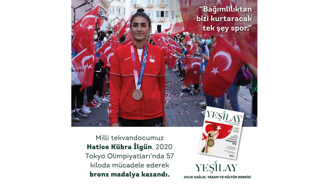 Türkiye’nin en köklü sağlık, yaşam ve kültür yayınlarından Yeşilay Dergisi, Eylül sayısını Tokyo Olimpiyat özel içeriğiyle hazırladı. “Spora Odaklan Yaşamayı Seç” temasıyla hazırlanan özel sayıda Türkiye’ye olimpiyatlarda madalya gururu yaşatan sporcular ve antrenörleri ile röportajlar yer alıyor. 1925’ten bu yana bağımlılıklardan uzak ve sağlıklı yaşam alanında dosya konuları, uzmanlar, sanatçılar ve sporcuların ilham veren röportajlarıyla her ay okuyucusuyla buluşan Yeşilay Dergisi Eylül ayında 1052. sayısını yayımladı. Okçulukta altın madalya kazanan Mete Gazoz, jimnastikte bronz madalya kazanan Ferhat Arıcan, tekvandoda bronz madalya kazanan Hatice Kübra İlgün, güreşte bronz madalya kazanan Yasemin Adar ve modern pentatlonda (eskrim, yüzme, binicilik, atış ve koşu) beşinci olan İlke Özyüksel olimpiyat heyecanını Yeşilay Dergisi’nde anlatıyor.