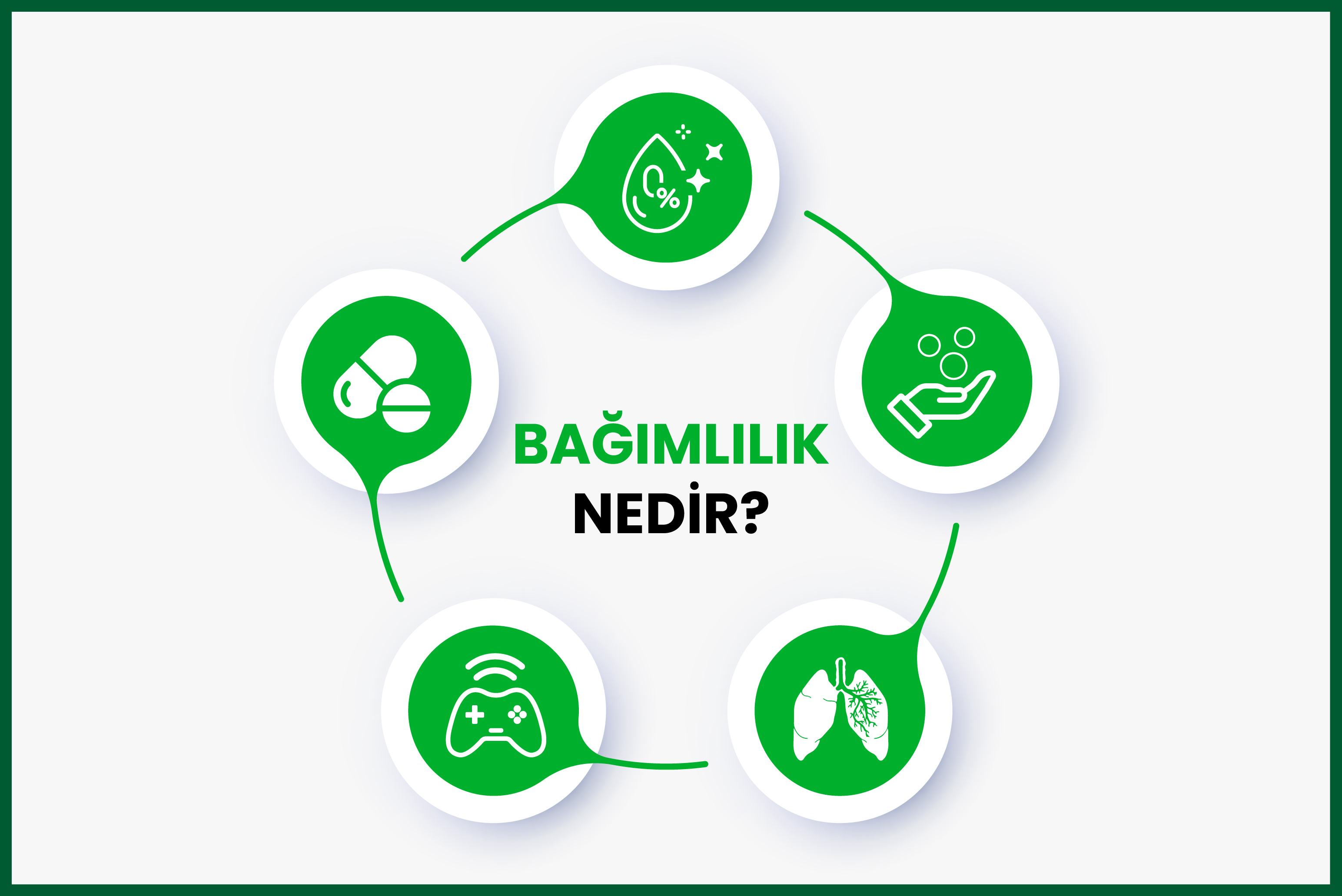 “Bağımlılık; kişinin kullandığı bir madde, alkol, nesne veya yaptığı bir davranış (eylem) üzerinde kontrolünü kaybetmesidir. Kontrolsüzce kullanılan her madde ya da gerçekleştirilen her davranış bağımlılık oluşturma riski taşır. Kişiler hayatta birçok şeye karşı bağımlı olabilir. Örnek: madde, alkol, sigara, kumar, teknoloji, herhangi bir eşya veya davranış (Ögel, 2018; Yeşilay Yayınları, 2018).”