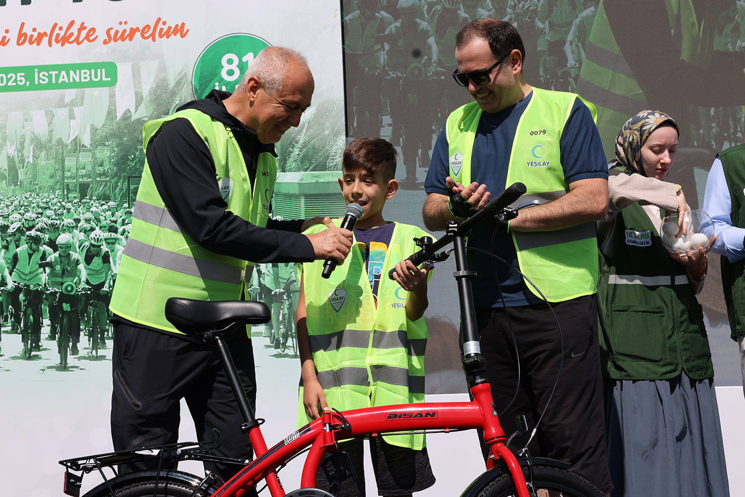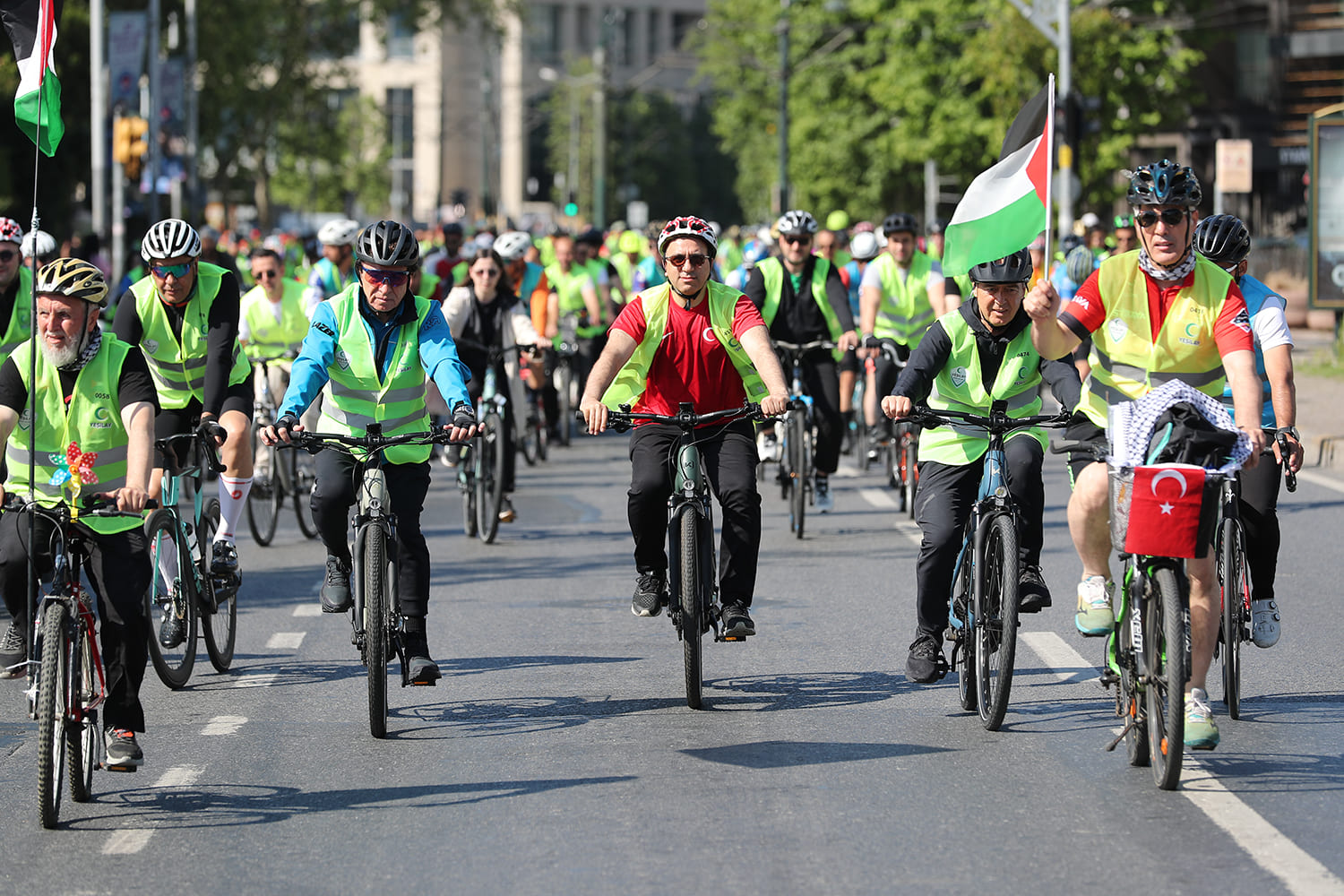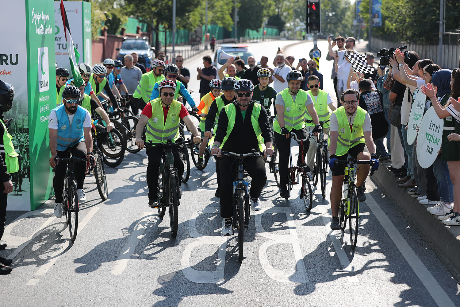 Yeşilay Genel Merkezi Sepetçiler Kasrı’ndaki buluşmaya aralarında aileler ve çocukların da bulunduğu çok sayıda bisikletlinin yanı sıra Yeşilay Genel Başkanı Doç. Dr. Mehmet Dinç, Bisiklet Federasyonu Başkanı Emin Müftüoğlu, Yeşilay genel başkan yardımcıları ve yönetim kurulu üyeleri de katıldı.