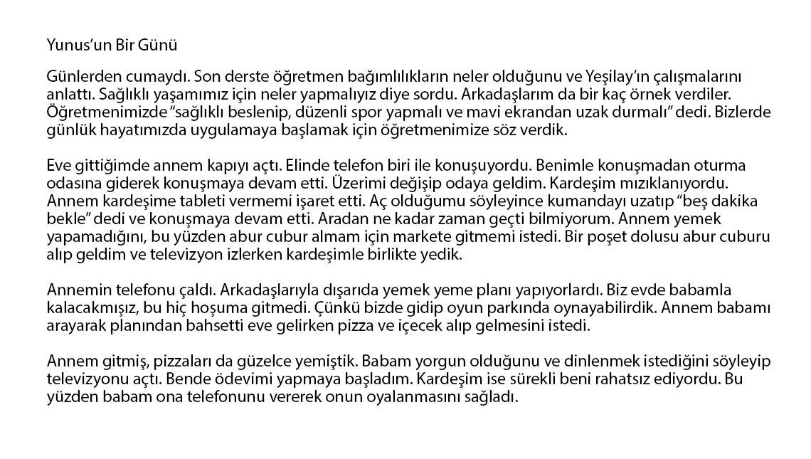 İlkokul, ortaokul ve lise öğrencilerinin katılımına açık yarışmada, edebi ve görsel olmak üzere iki kategoride bağımlılık konulu eserler değerlendirildi. Yarışmanın ilk aşamasında bu iki kategoriden 81 ilin ilkokul, ortaokul ve lise birincileri belirlendi ve ödüllendirildi. Toplam 480 il birincisinin değerlendirildiği Türkiye finalinde ise her düzey ve kategoriden ülke şampiyonları belirlendi. Ödül töreninde dereceye giren 18 eser sahibine ödülleri takdim edildi. Kategori birincileri 5 bin TL, ikincileri 3 bin 500 TL, üçüncüleri 1.000 TL ödülün sahibi oldu.