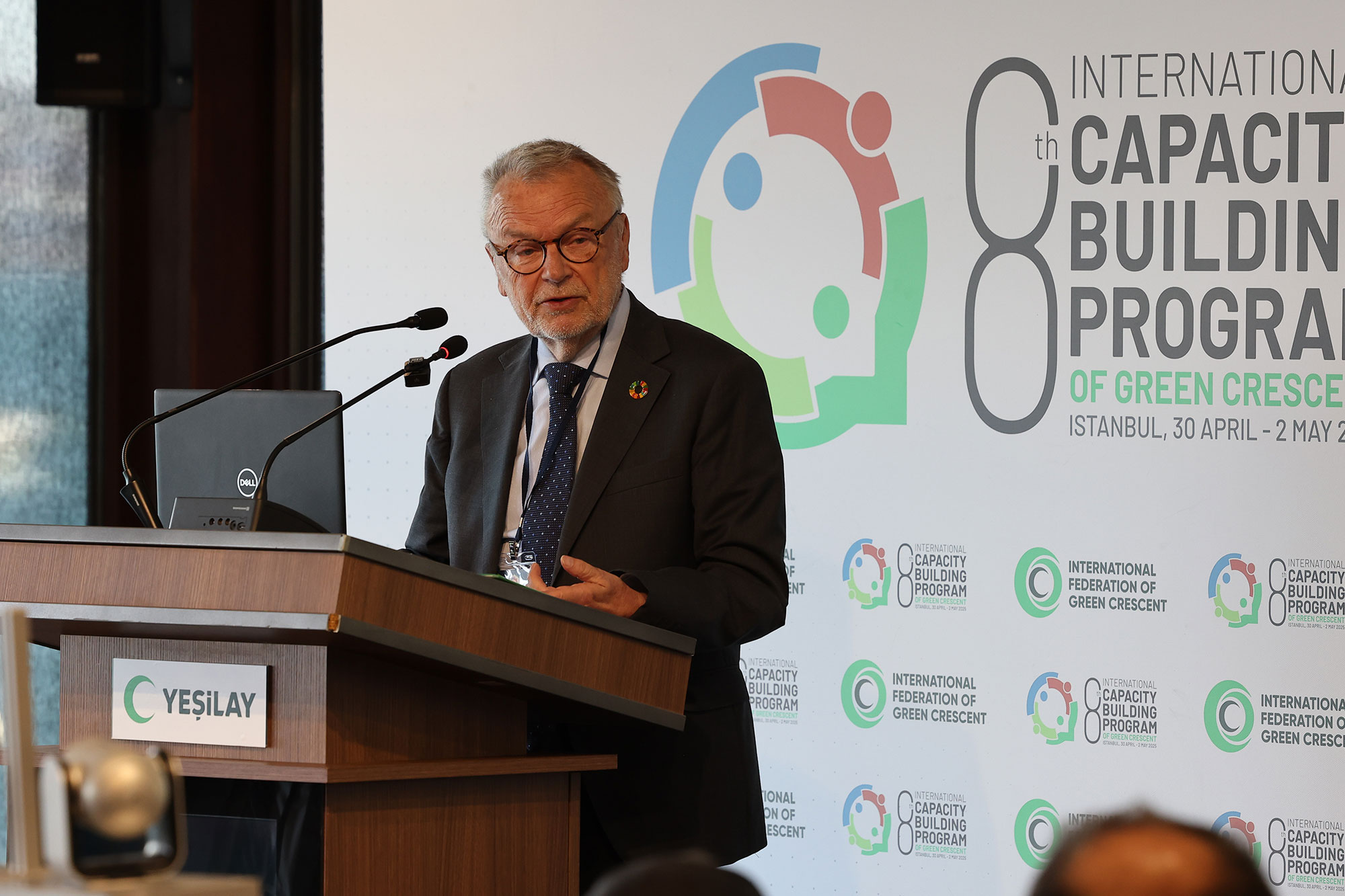 8. Kapasite Geliştirme Programı’nın açılış konuşmasını yapan Yeşilay Genel Başkanı Doç. Dr. Mehmet Dinç, “1920’den bu yana bağımlılıklarla mücadelede asırlık bir tecrübenin sahibi Türkiye Yeşilay Cemiyeti olarak, çok önemli bir programın ev sahipliğini üstleniyoruz. Hepinizin bildiği gibi ‘bağımlılık’ ne yazık ki tüm dünyayı etkileyen bir dalga haline geldi. Bugün burada bizimle olan ülke Yeşilay’larından temsilcilerimizle birlikte, dünyanın dört bir yanında, savaş kadar yakıcı, yıkıcı ve tehlikeli olan bağımlılıklarla mücadele ediyoruz. Burada bulunduğumuz üç gün boyunca toplumların geleceğini tehdit eden bağımlılıklar üzerine tartışarak, bağımlılıkla mücadelede daha güçlü önleme programları üzerine istişarelerde bulunacağız. Bu mücadele beraber yürüdüğümüz yol arkadaşlarımız olan ve program boyunca bizimle değerli fikirlerini paylaşacak olan 60 ülkeden 88 temsilcimiz başta olmak üzere, 15 ülkeden 32 katılımcımıza gönülden teşekkürlerimi sunarım” dedi.