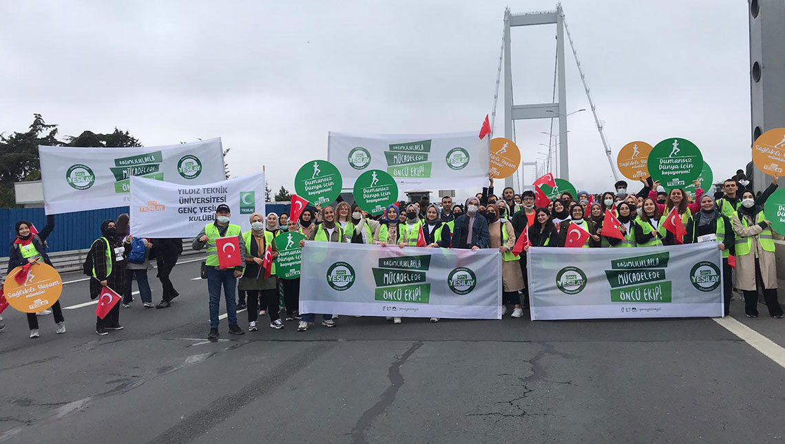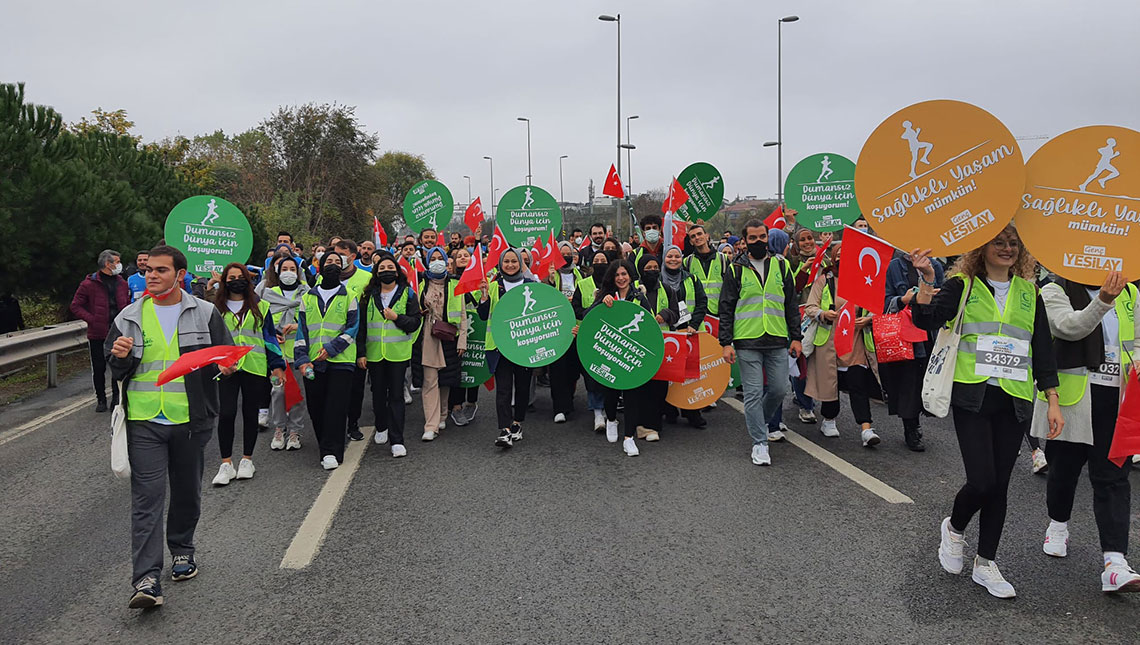 Covid-19 önlemleri alınarak sınırlı sayıda yerli ve yabancı atlet ile düzenlenen Maratona, Genç Yeşilaylı 100 gönüllü “ Sağlıklı Yaşam Mümkün”, Ekrana Değil, Hayata Bağlan”,” Dumansız Dünya için Koşuyorum”, “ Sağlıklı Yaşamı Seç” pankartlarıyla destek verdi.